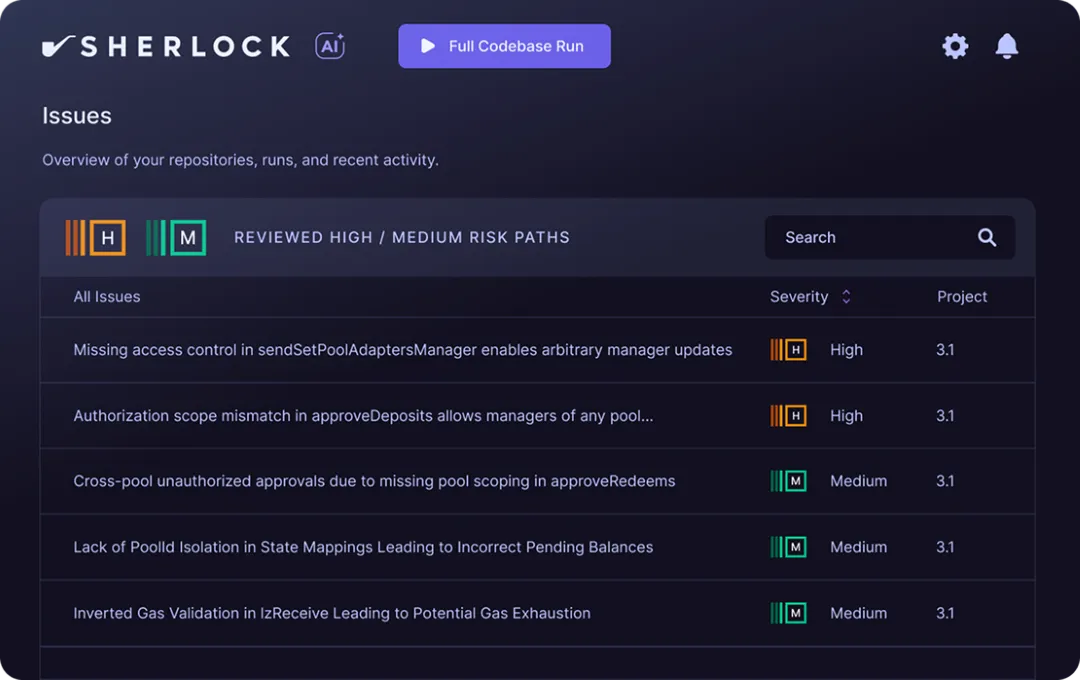 Sherlock’s bug bounties create an active incentive layer on your live code, bringing experienced hunters to test it while Sherlock’s in-house team triages findings as they come in.