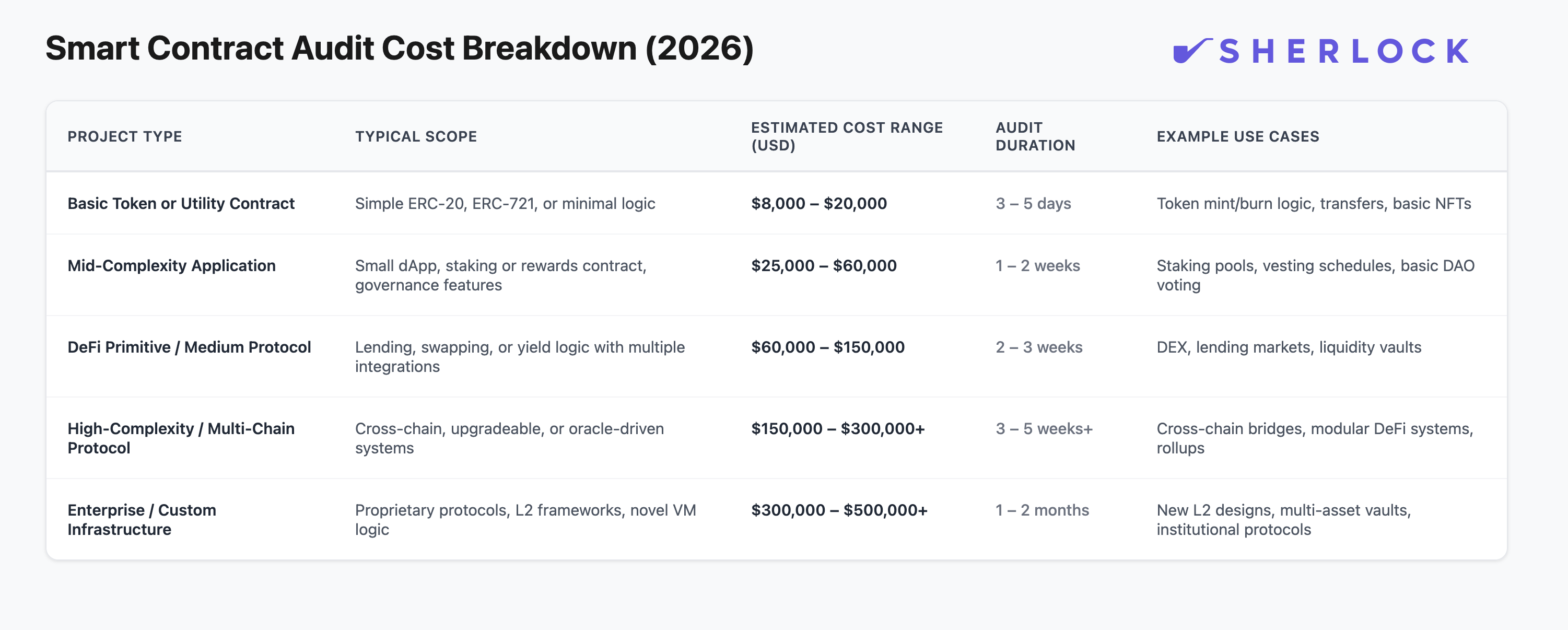 Smart contract audits in 2026 range from $8K to $300K+. Learn what drives pricing, how long audits take, and what those costs actually cover.