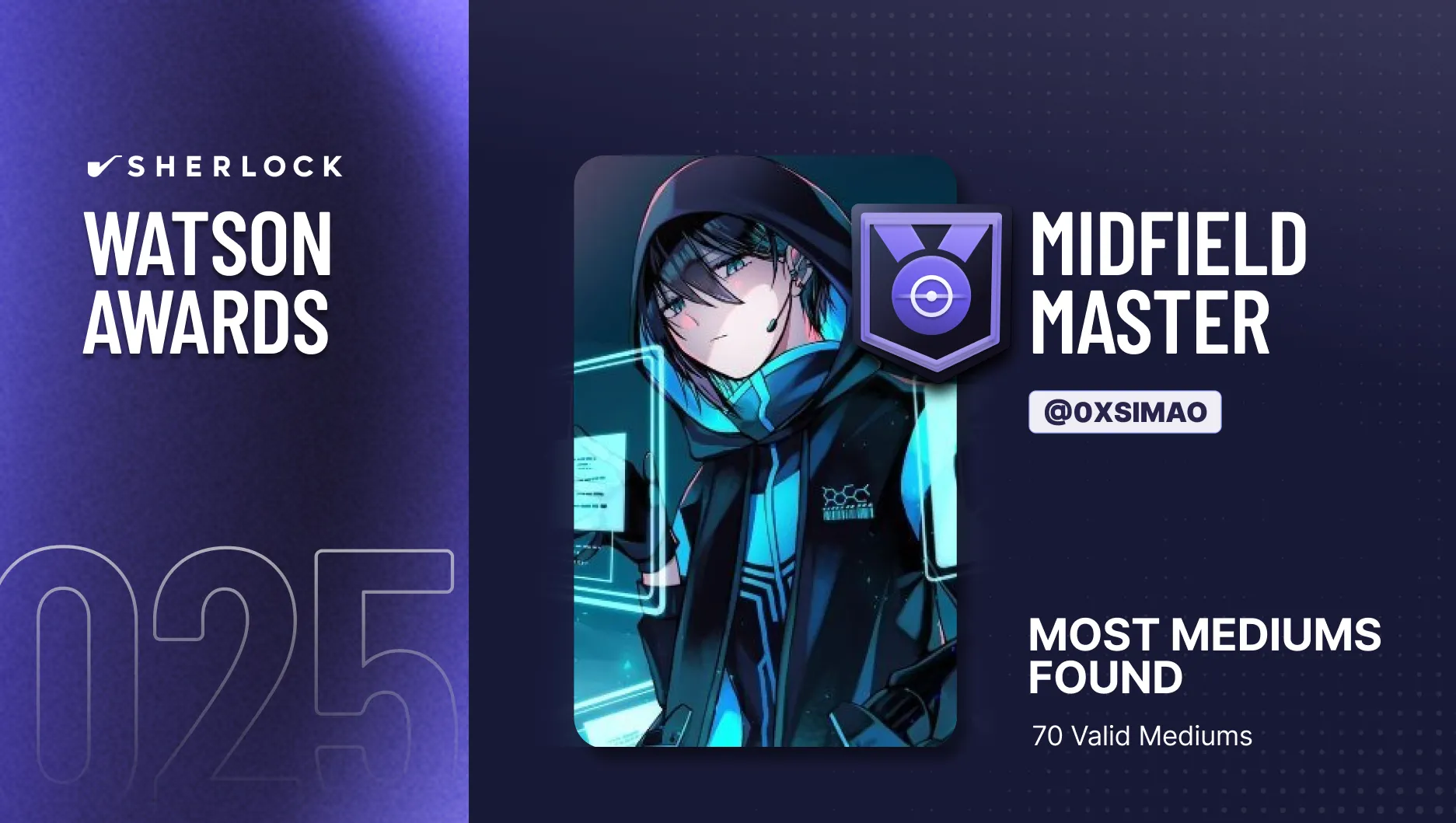 The Midfield Master award is given to the Watson who identified the most medium-severity vulnerabilities in contests in 2025.
